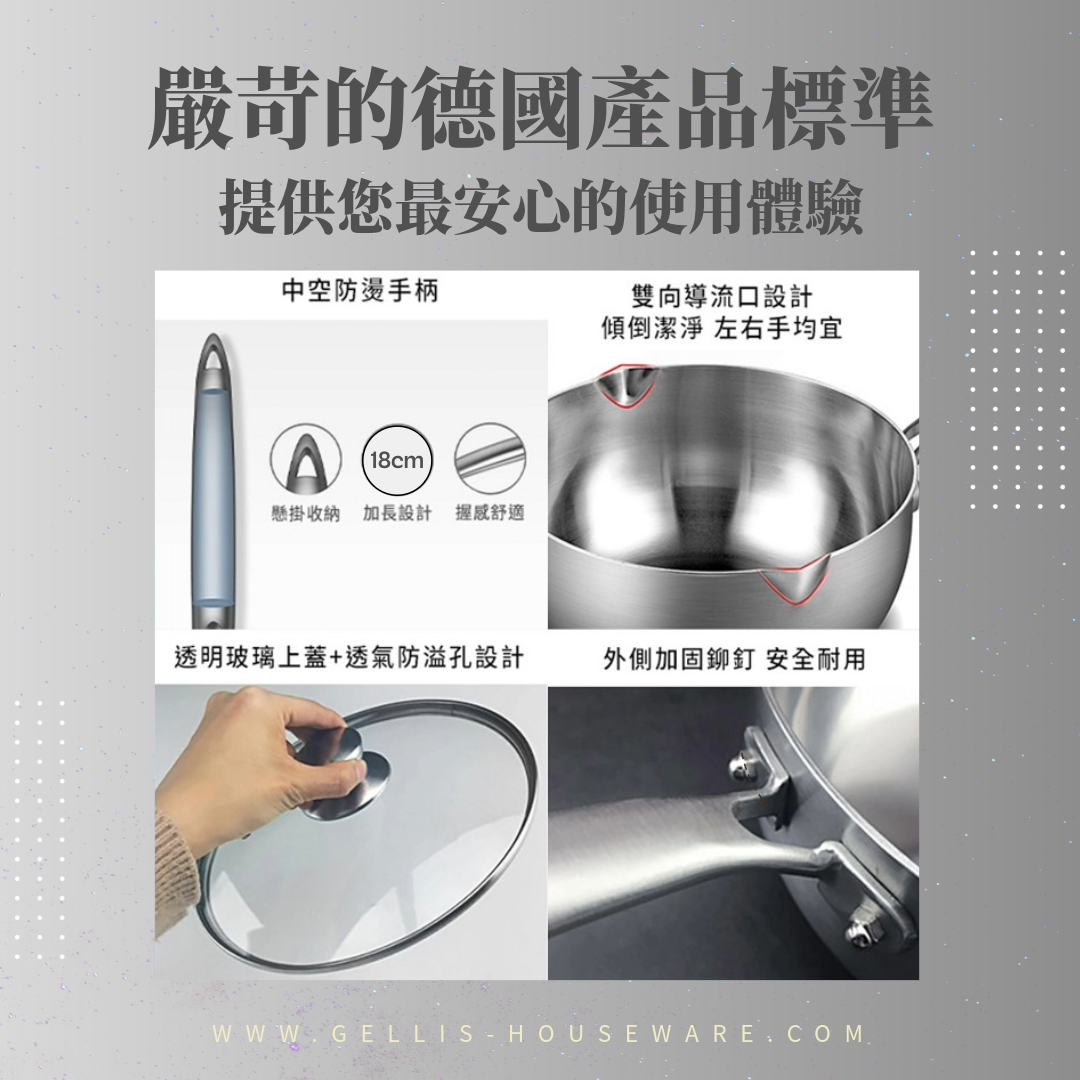 5.中空加長防燙手柄, 使用好方便7.鍋身精細拉絲, 易清洗, 防刮花