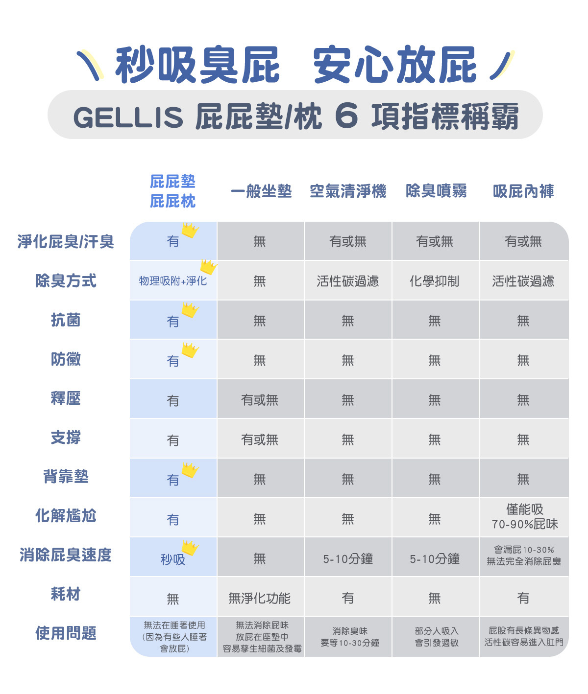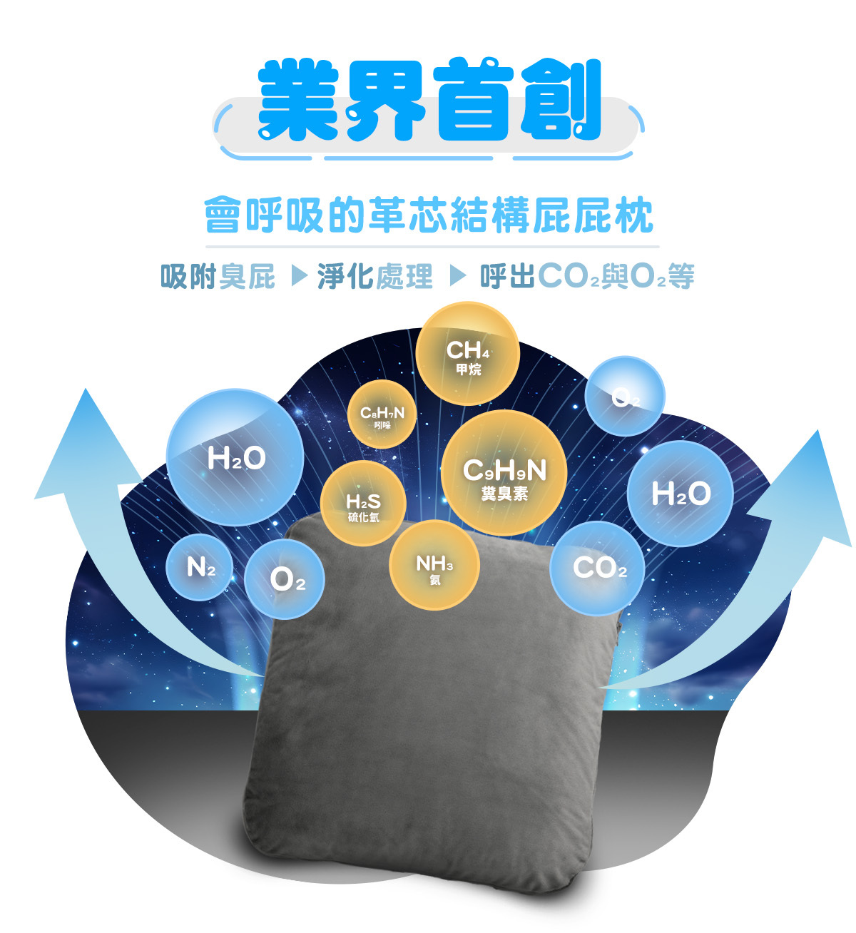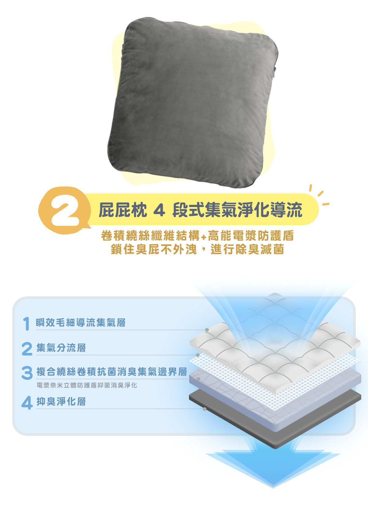 GELLIS高能電漿屁屁枕 I 吸屁除臭滅菌 I 獨家高能電漿卷積結構, 零耗材設計 ! 台灣設計專利 台灣生產製造