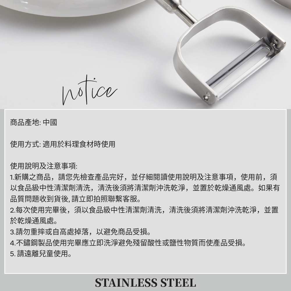 4. 本商品使用不銹鋼材料, 使用後仍需清潔含鹽性物質與酸性殘留物, 以避免產生銹跡