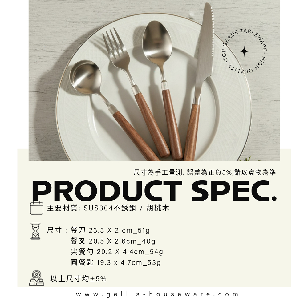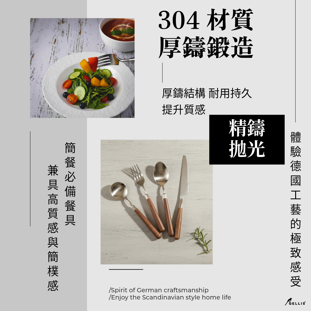 品名:GELLIS鵲利仕輕巧胡桃木多功能餐具組