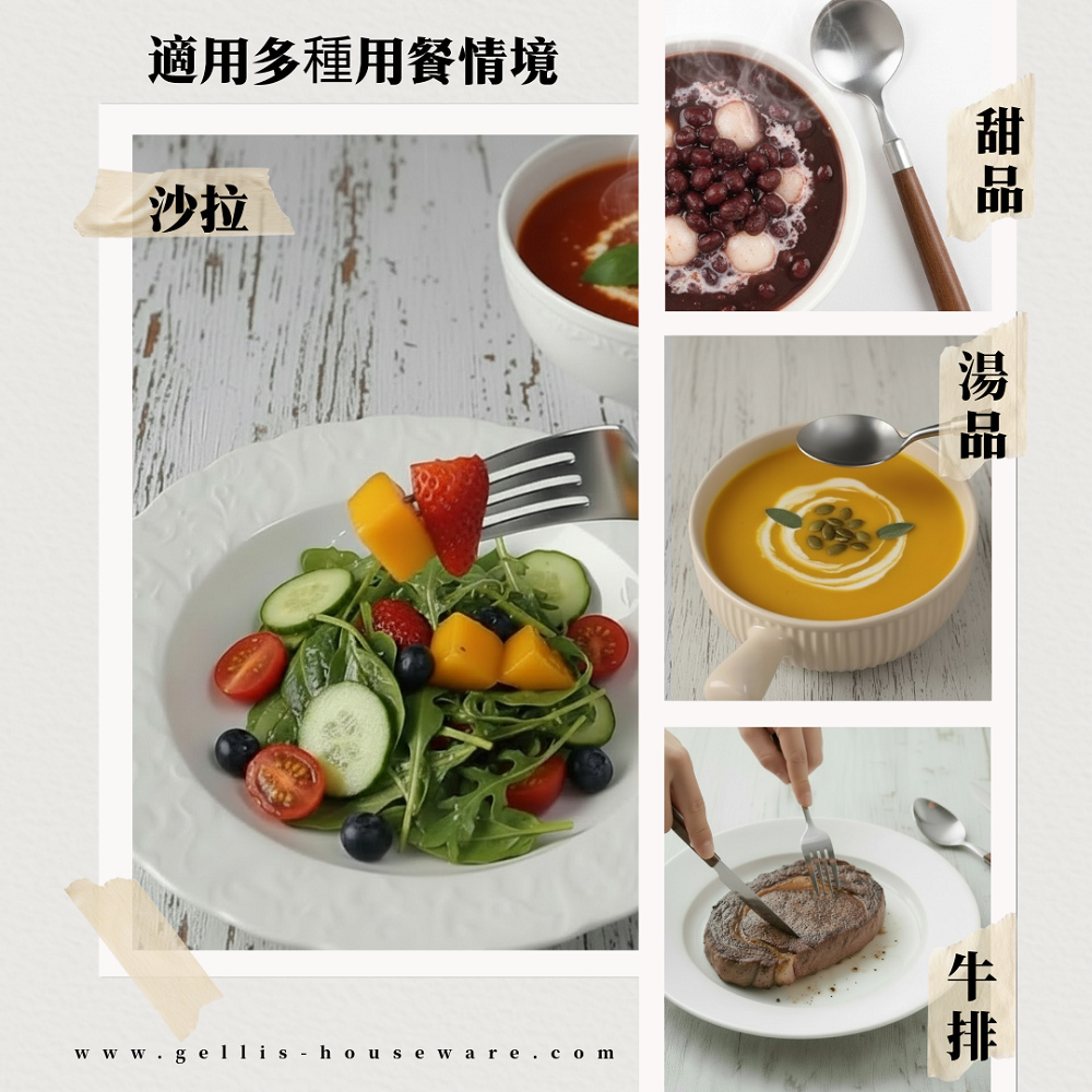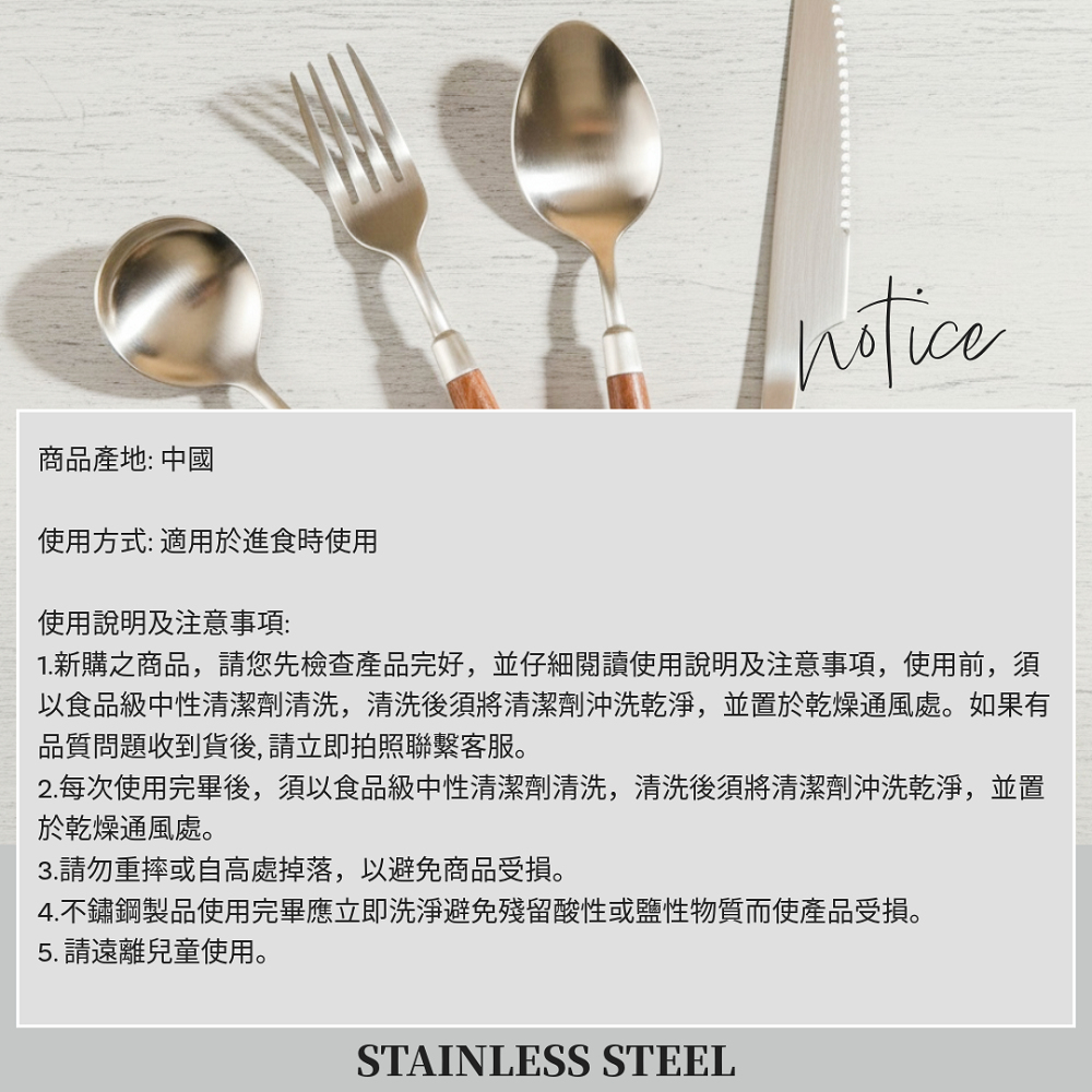 商品尺寸:餐刀23.3x2cm/餐叉20.5x2.6cm/尖餐勺20.2x4.4cm/圓餐匙19.3x4.7cm±5%