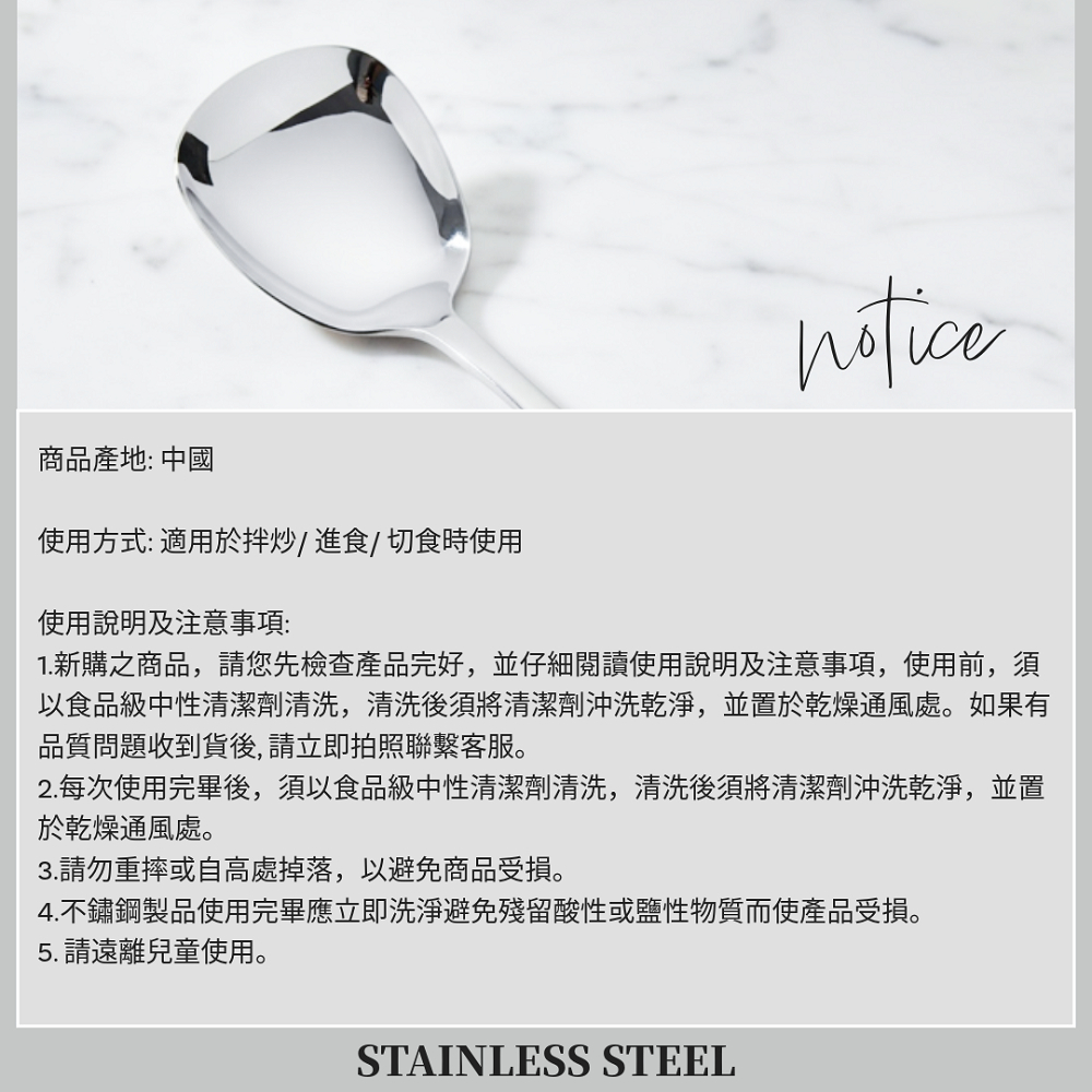 相較於一般餐勺,這款鏟勺擁有更寬大的平頭設計,能一次盛取更多的份量。不論是分菜、撥鬆米飯或是盛裝較大塊的食材,都更加穩固高效。